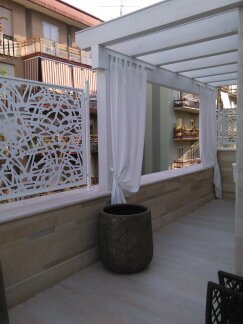 La nostra linea di tende per esterni e terrazze vi aiutera' a valorizzare l'uso dello spazio esterno creando un ambiente vibrante e funzionale. Le linee pulite e gli abbinamenti di bianco e colore lasceranno un'impronta fresca e senza tempo.